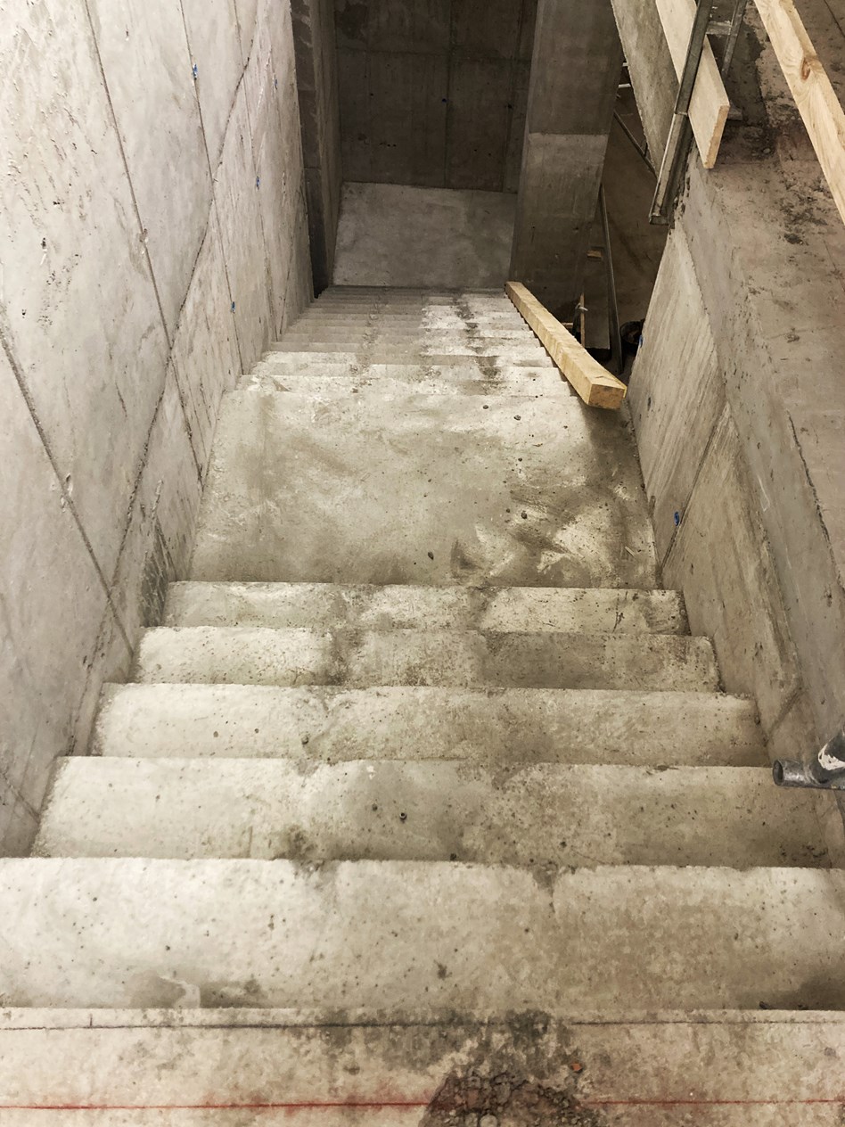 Die Betontreppe ist gegossen und bereit für den weiteren Ausbau.