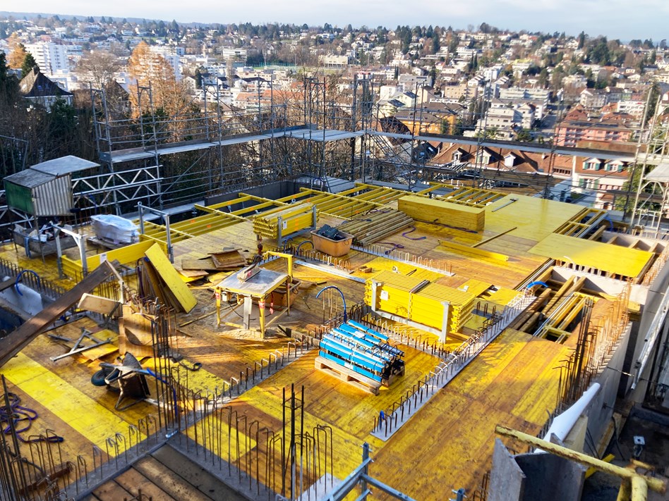 News / 05.12.2025 Baufortschritt: "Bruderholzrain 48", Binningen Die Decke der Ebene -2 wird geschalt.