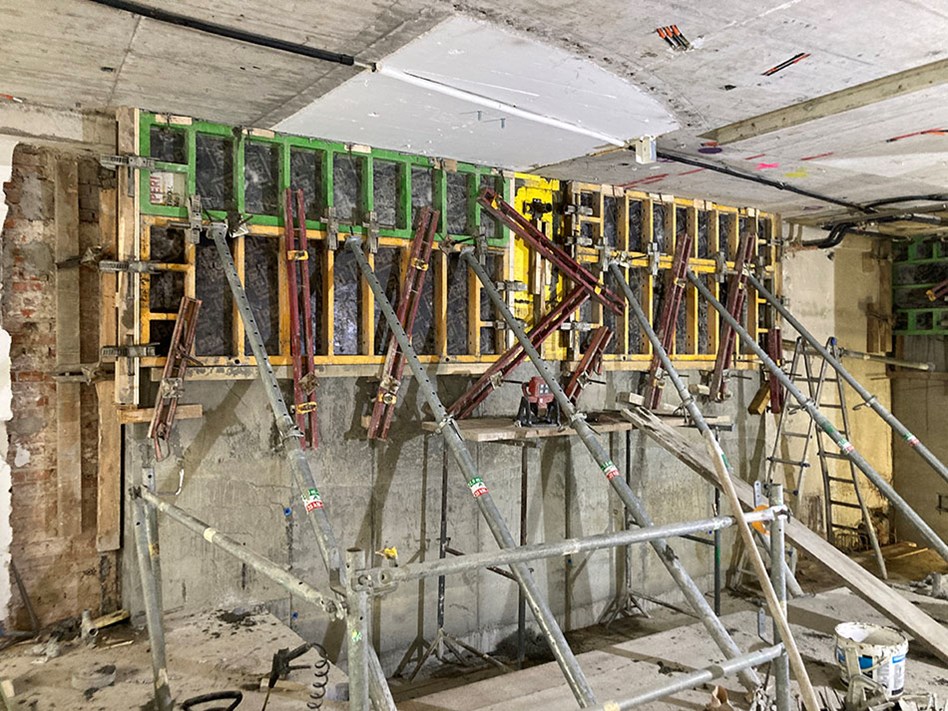 News / 24.10.2025 Baufortschritt: "Freie Strasse", Basel Wände und Stützen werden im 1. Obergeschoss betoniert.